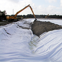 Basetrac Duo garantit une imbrication des matériaux de remblai grâce à la combinaison d’un non-tissé et d’une géogrille de renforcement. Il assure également la fonction de séparation empêchant le mélange des matériaux sus- et sous-jacents. Basetrac Duo se prête aussi parfaitement à la fabrication de grands panneaux préassemblés par couture, par exemple pour la réhabilitation de bassins de décantation qui peuvent être ainsi couverts de manière simple et rapide. Les caractéristiques de séparation et de filtration du non-tissé contribuent à accroître sensiblement la stabilité de la couverture. Plus besoin de prévoir de substitution du sol.